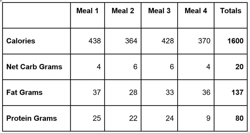 The meal plan has 4 daily meals with recipes that are exceptionally filling, and each meal is distributed equally in calories for maximum satisfaction. The reasoning for 4 meals rather than the usual 6 meals you find in other Diabetes Strong meal plans is due to the common appetite suppression brought on by a ketogenic lifestyle (1).